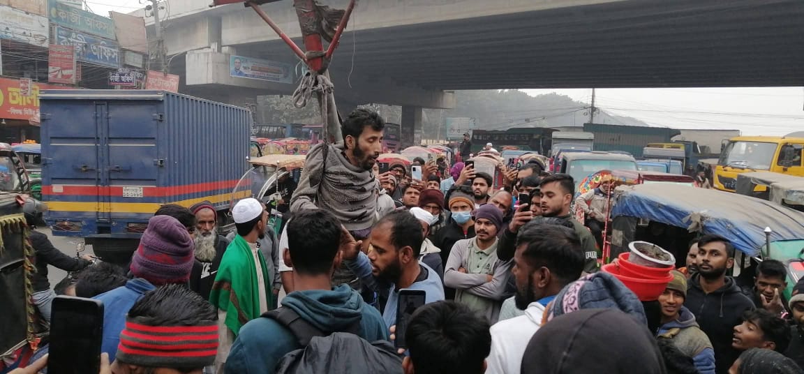 টঙ্গী স্টেশন রোড এক পথচারীর মোবাইল হাত থেকে ছিনিয়ে নিয়ে যাওয়ার সময় হাতেনাতে ধরে চোরকে সাধারণ জনতা খুঁ*টির সাথে বেঁ*ধে
