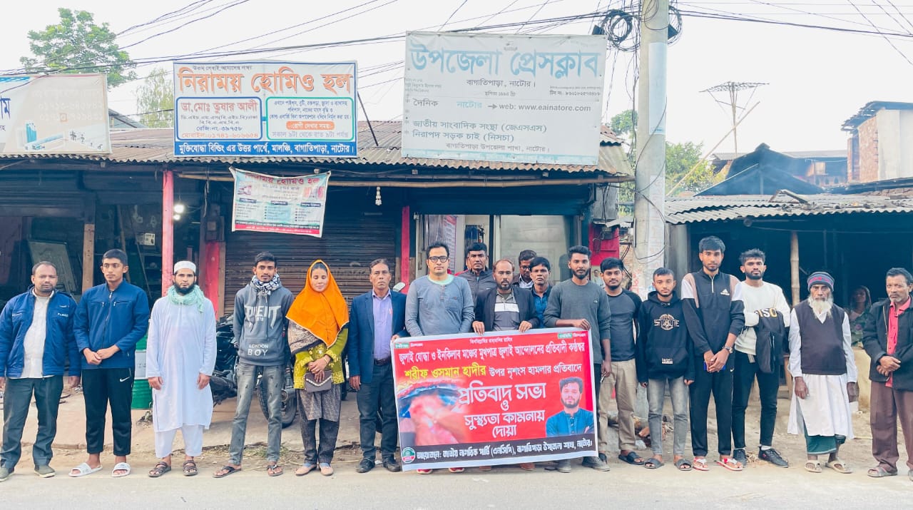 ওসমান হাদীর উপর নৃশংস হামলার প্রতিবাদে নাটোরে এনসিপির প্রতিবাদ ও দোয়া মাহফিল সাধীন আলম হোসেন নাটোর জেলা প্রতিনিধিঃ